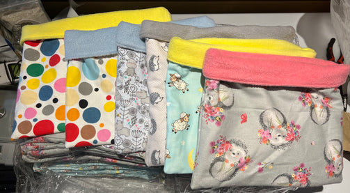 The snuggle sacks are a great way for your hedgehogs to snuggle in. There’s been times where people see their hedgehogs actually bring the sacks inside their igloos for added warmth. This is also a great way to bond with your hedgehogs when your on your computer or watching TV.